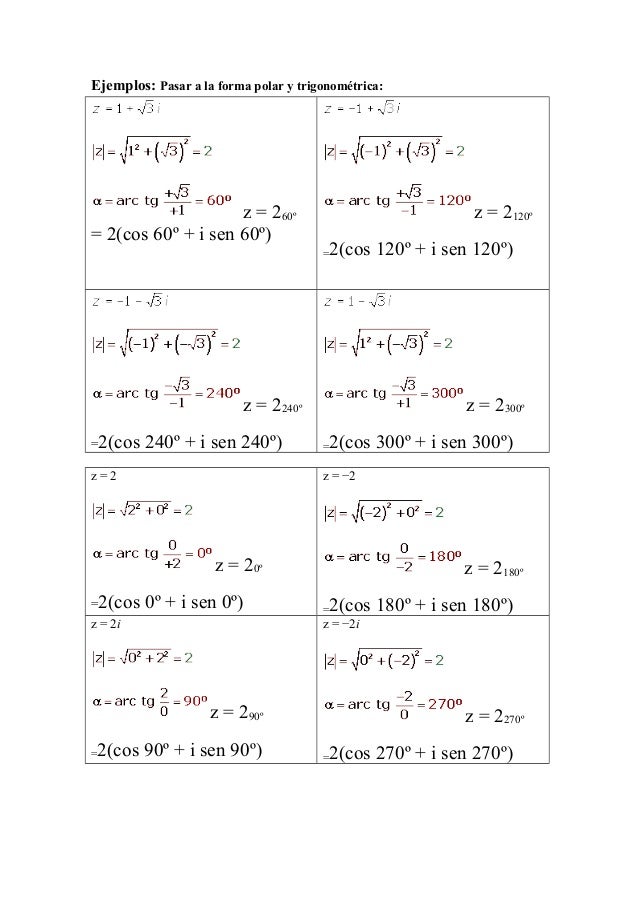 Formas Binomica Trigonometrica Y Polar De Los Numeros Complejos O